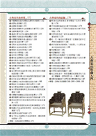 4. 針對古典家具種類、風格流派、結構裝飾、材質、紋飾做詳細介紹。
