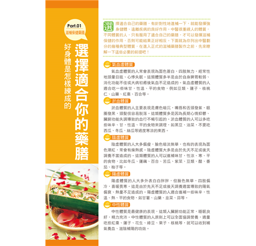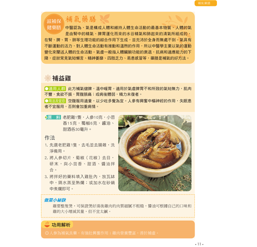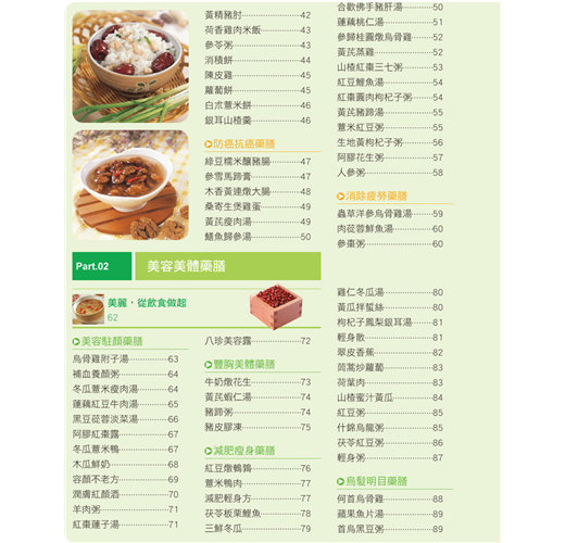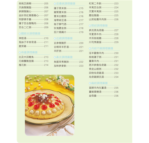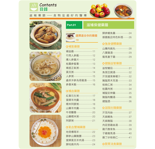 本書就是這樣一冊針對百姓大衆的藥膳書籍。書的主題部分收錄了450多道非常實用的藥膳,除了詳細列出每道藥膳的製作過程,同時還詳備出該藥膳的適用人群、服法、宜忌等,使讀者一目了然。值得一提的是,書中針對現代人的需要,系統化、科學化地將這些藥膳分門別類,將具有針對性的藥膳介紹給適宜人群,非常方便檢索。本書圖文並茂、易學易懂,是推廣藥膳學、造福於民的一次成功之舉。筆者本人對此亦是滿懷喜悅之情,希望本書的讀者可從中獲益,感受到中華傳統文化為現代生活帶來的舒適與便利。