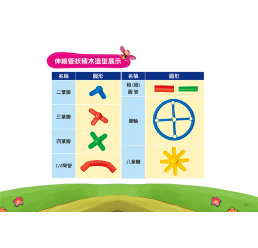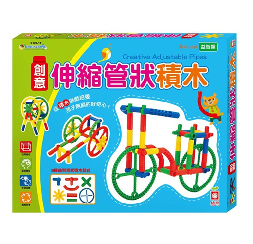 《創意伸縮管狀積木》具備豐富的積木造型,利用組合粗細不同的管狀積木,設計出長度可伸縮的創意變化,當孩子動手拼裝時,透過奇妙而有趣的多樣組合,能培養孩子在面對新鮮事物時,總是充滿好奇。