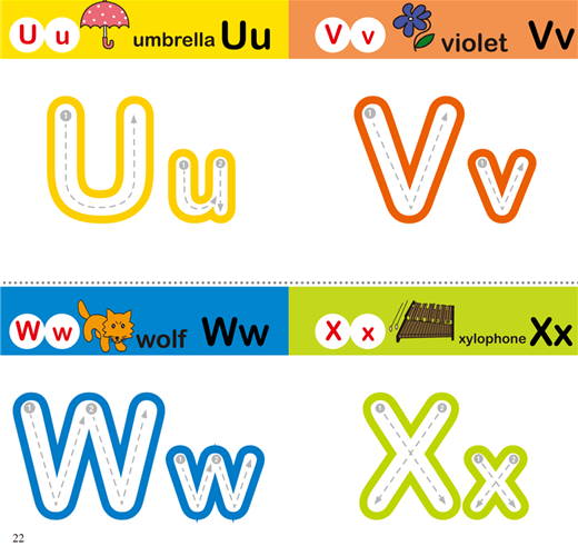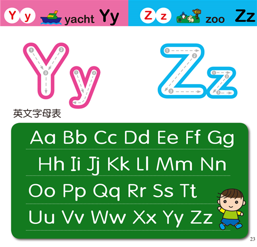 本書為ABC書寫練習,藉由圖案的引導讓孩子對26個英文字母更熟悉,在不知不覺中輕鬆學會26個英文字母大小寫!