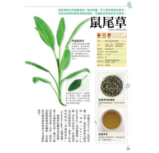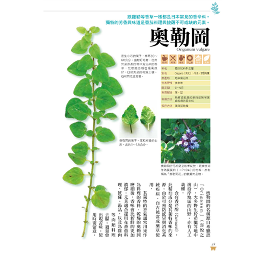 5解說正文:說明香草、香料的特色與名稱由來、歷史、藥效、方便的利用方法……等等。