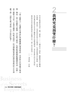 人生的問題在於,當下我們只能往前走,卻又只在回顧時才能理解。當我於一九九六年第一次開車駛入麥普金修道院的大門時,完全料想不到日後會寫一本有關特拉普修士商業敏銳度的書。那個時候的我,是一家剛起步的軟體公司執行長,正經歷人生中最重大的危機,當時我迫切地想從修士身上得到心理和靈性上的幫助,而他們也仁慈地提供我所需的一切協助。我對修士們的虧欠實在是太多了,光是這本書根本不足以回報。