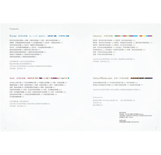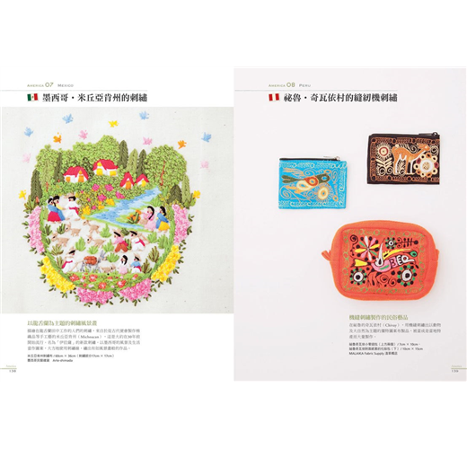 收集了民俗藝品及民族服裝、公平交易的刺繡製品、手工藝作家的作品等,世界各國的許多刺繡。關於傳統刺繡為基礎製作的作品,會加以說明刺繡特徵。除了欣賞得到世界各地豐富的刺繡設計,還可以當成是刺繡和設計等創作參考,增添生活色彩的雜貨點子型錄,站在純欣賞的角度也相當賞心悅目。