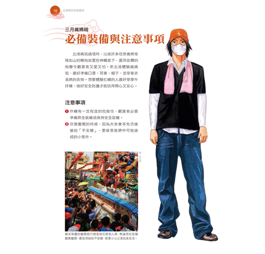 以簡明易懂的圖解,將許多文字難以表達、一般民眾難見未見的民俗事物(例如長達數百公尺、讓人眼花撩亂的遶境隊伍),透過豐富精采的照片與精細生動的插畫,讓人一目了然、印象深刻,輕鬆認識民俗文化的風貌。