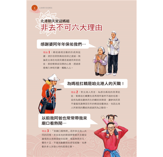 ※ 書中附有大量手繪插畫,將北港迎媽祖的盛況、規模龐大陣頭與遶境隊伍完整呈現!