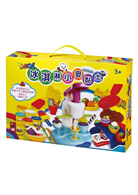 6色黏土(綠色、紅色、橘色、藍色、白色、黃色)、23款黏土工具(1組冰淇淋製造機、1個擠壓器、2把圖案尺、2把工具刀、2個冰棒模具、2枝圖案冰棍、4個甜筒、1甜筒架、1把湯匙、1個鬆餅模具、2個碟子、4個杯子)