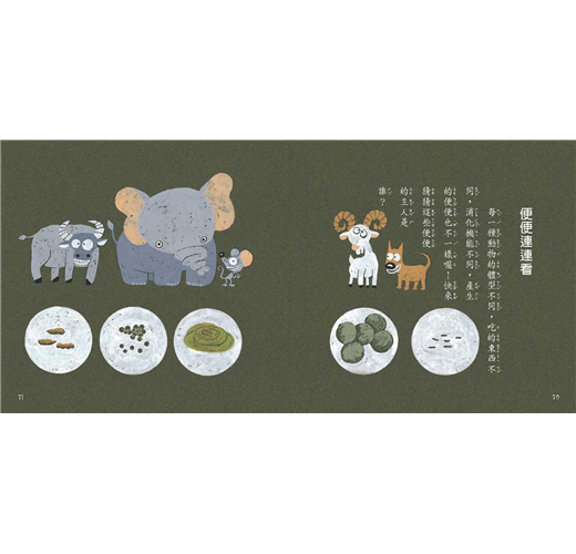每一種動物的體型不同,吃的東西不同,消化機能不同,產生的便便也不一樣喔!快來猜猜這些便便的主人是誰?