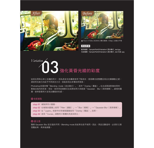 ◎隨書收錄了20餘種編修範例光碟,一次補完你的數位暗房後製力!