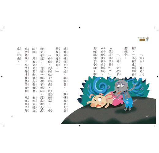 想知道黑漆漆王國究竟藏著什麼祕密嗎?趕快翻開書本,跟著白白和小豬,一起揭開黑漆漆王國的真相!