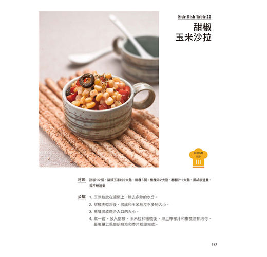 本書收錄適合小倆口烹調的6大類型食譜,包括早餐、單盤料理、晚餐、小菜、烘培和宴客料理,一共122道料理。透過圖文的步驟說明,能學會如何快速地烹調出好吃、量少又簡單的豐富餐點,滿足忙碌現代人想省時省事,又能煮出美味料理的需求。食譜的料理時間雖縮短了,但味道一點也不馬虎喔!