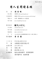古賢者將易經概分為上經三十卦與下經三十四卦,筆者亦依於此而有《用易經閱讀人生》的上經,與《用人生閱讀易經》之下經的撰寫。在五年的書寫時段,自己荒廢了生活經濟資源的開發;過程中,亦難免有因為經濟壓力而三心二意的掙扎。此書,若無內人 劉九好的體諒、包容與支持,絕然無法完成二書的撰寫。而天行書苑與易學好友 黃秀蘭女史投入於中華經典推廣的用心,及適時告知編輯進度的似有若無的督促,則讓撰寫有了與時俱進的成果。在此,謹以此書的完成,獻給默默付出的支持者們。亦祈願他們及讀者們都能因為易經的學、習,而擁有「吉無不利」的人生旅程。