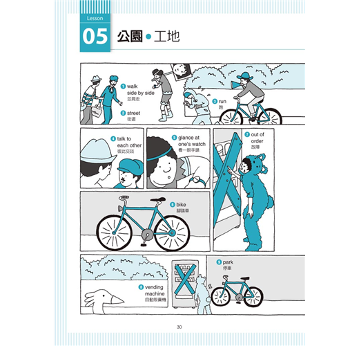 清新、具故事性的插圖,啟動記憶單字的按鈕