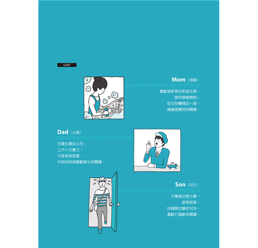 本書插圖由日本新銳插畫家加納德博繪製,全書分兩部分,PART 1「情境分類字彙」藉由一家三口的生活,引導考生學習相關的字彙,一幅幅的插圖猶如紙上動畫,順著故事的發展自然而然地記憶相關單字。PART 2「主題分類字彙」的插圖也暗藏玄機,插畫家不經意展現幽默的表現方式,讓人對單字的印象更深刻。