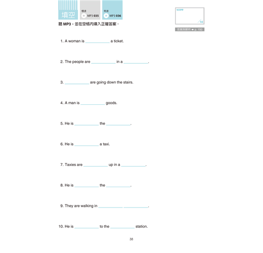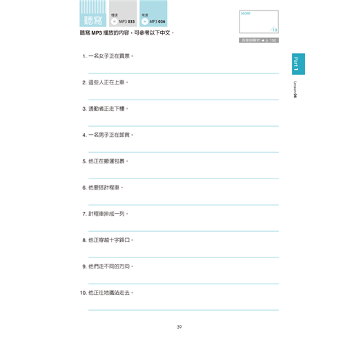 每個單元都包括「填空」和「聽寫」兩種練習,讓大家在熟記了插圖頁的單字和片語之後,也能了解實際的用法。