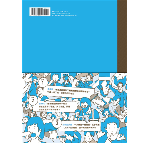 圖像能幫助記憶,因此許多字彙書都打著「圖解」的名號,宣稱能有效熟記單字。但是只要有圖,單字就能過目不忘嗎?眾多的插圖如果沒有關聯性,還是難以啟動記憶的按鈕。此外,光有插圖而沒有實際練習,無法了解字彙的用法,還是無法通過TOEIC的嚴格考驗。本書以清新、具故事性的插圖,加上字彙練習題與模擬試題,幫助考生打好字彙基礎並熟悉TOEIC題型,穩步朝著600分的目標邁進!