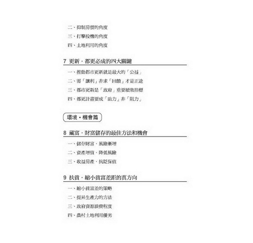 隨著社會進步和經濟發展,對於地產知識,了解的愈早,就愈有脫貧致富的機會,地產大約每十年可有一次大幅增值的機會,因此,人們一生中大約最多只有五次機會(通常只有3至4次),只要能夠把握到一次,今生就不致貧窮;能夠把握到二次以上,就可安穩一生。否則,就只能默默承受無能政府和錯誤政策所形成的環境,一生貧窮和一生抱怨。