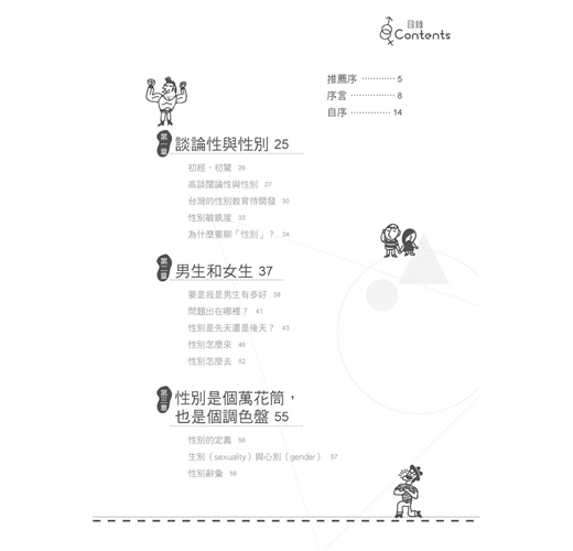 這本書不是健康教育,主題也不是「性」,之所以要強調「性教育」的重要,是因為「性與性別」無法分離,瞭解「性」的同時需要同步瞭解「性別」,瞭解「性別」的同時也不能忘記「性」的重要。就台灣傳統教育課程的比例而言,「性別教育」相較於「性教育」好比小蝦米相較於大鯨魚,如果說台灣的性教育是小沙洲,那性別教育就是一片無際的沙漠。為什麼要聊性別?因為性別就是你我,性別是身心靈的合一,是身心、個性、人格和自我的整合,探尋自我向來是人生中極為重要的課題,如果你不懂自己的「性別」,那你是誰?