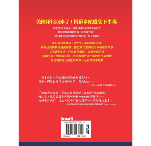在上一本書與《Smart智富》月刊的固定專欄中,愛榭克精準命中美國聯準會的QE動向、拆解歐債危機的虛幻與真實,並幫助投資人抓住近年美股的創新高行情。這一次,他要以更宏觀的視野,跨越40年經濟史,帶領讀者深入瞭解美國從雷根總統以來的三大經濟盛世-「雷根榮景」、「柯林頓榮景」,以及正準備加速升空的「歐巴馬榮景」,不論你想瞭解未來即將發生的財經大趨勢,抑或想在投資市場大獲全勝,你都不應該錯過本書。
