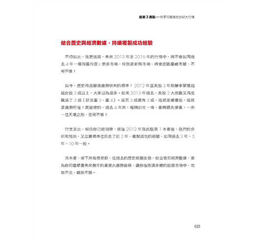 行文至此,相信你已經明瞭,就在2012年我出版第1本書後,我們的分析和預測,又忠實精準往前走了近2年,複製成功的經驗,如同過去3年、5年、10年一般。