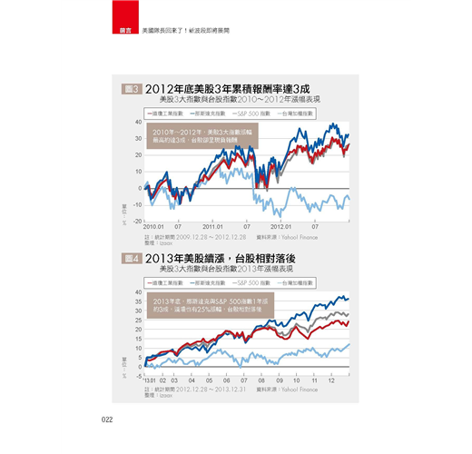 如今,歷史再度驗證趨勢研判的精準!2012年底美股3年報酬率累積超越台股3成以上,大家以為漲多。結果2013年過去,美股3大指數又再度飆漲了3成。漲完3成還有3成,這就是績優股,這就是趨勢所在!買錯標的,過去4年來,輕則白忙一場,重則損失慘重,一來一往天壤之別,豈可不慎?