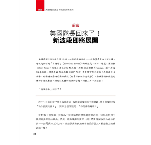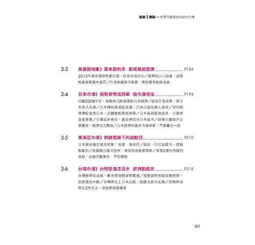 而本書,接下來每個章節,從過去的歷史經驗出發,結合當前經濟數據,要為你前瞻擘畫未來幾年的重要大趨勢路線,讓你在詭譎多變的投資市場中,攻無不克,戰無不勝。