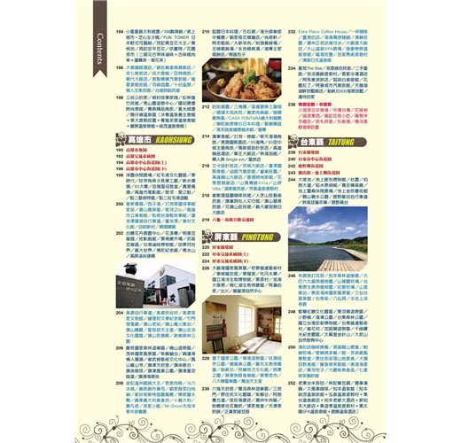 收錄全台66幅地圖、700個景點、220道美食、260家精緻旅宿、15篇專頁。