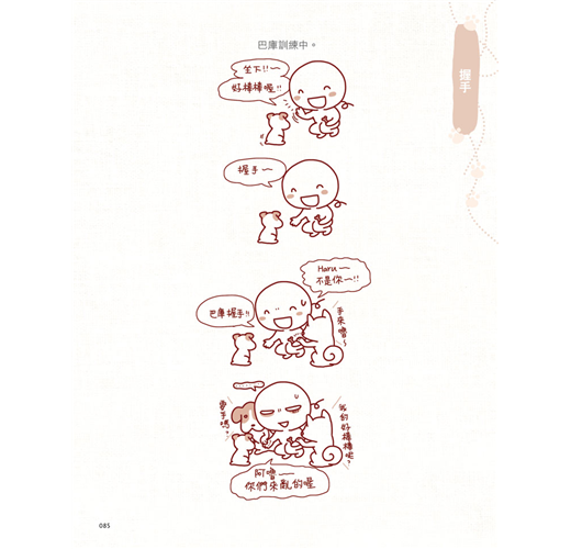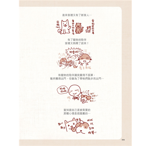 這次不只是一個全新以寵物為主角的塗鴉日記,更用照片記錄了彎彎與寵物一起去體驗路跑和狗醫生訓練的過程。全書以柔和的淡彩風格描繪,從封面到內頁都希望可以傳達「陪伴」這個重要的主題,當你和家裡的毛孩子在一起時,不只是你在陪牠們,其實牠們也在陪伴你喔。