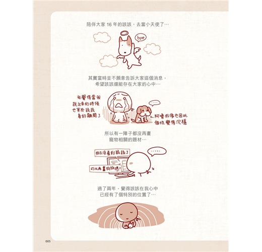 「謝謝你用你的一生陪伴我們家,在我心裡,我們永遠在一起。」特別收錄該該的故事,感謝陪伴了彎彎16年的愛犬該該,雖然該該已經離開,在彎彎的心裡永遠跟該該在一起。
