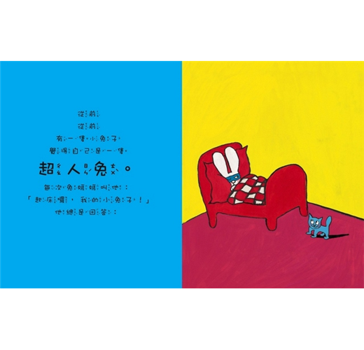 這隻兔子確實與眾不同,他超有個性、超有自信,他用自己的方式說話、做事,隨時不忘自己是隻超人兔。可是,仔細一瞧,這不就是孩子的樣子嗎?童稚期的自我與叛逆,讓大人有些傷腦筋,卻又覺得可愛無比,這就是超人兔!