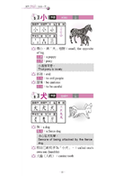 每個字包含正/簡體、手寫體、漢語拼音、注音符號、字形演變、筆劃順序、詞例、中英文解釋、例句、輔助插圖。