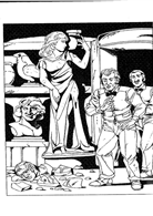 「那頭豹是用來追逐野鹿的,狒狒則是從小就馴養了的。羅洛德博士儘管說得輕鬆自然,我們還是覺得害怕。」