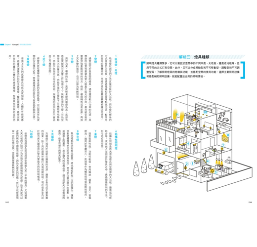 玄關、客廳、餐廳與廚房、廊道與樓梯、書房、臥房、衛浴、神龕、商業空間,如何選用燈具?如何配置?實景照片+設計解說+燈具資訊,一看就懂!
