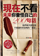 《現在不看,未來你會怪自己的兩百句話》就是一本想告訴讀者即使是在人生最低潮時,也不要失去快樂心情和對明天希望的「勵智療癒書」,書中編撰了兩百句關於人生、夢想、得失、工作、人性、堅持、輸贏、態度、生活、心靈……等等最重要的「廢話」,無非就是想告訴讀者,當我們會自己問自己:「活著意義到底是什麼?」的時候,如果不是自己的人生出了問題,就是代表我們已經開始懂得思考了。