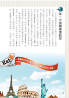 第五章帶領我們飛出台灣,遨遊歐洲。遊歐洲是很多人心中的夢想,若能搭乘廉價航空真可說物超所值,但目前飛歐洲的航班非常之少,往往脫離不了轉機和停留的命運,因此前往歐洲的機票,建議先考慮傳統航空公司較實在。