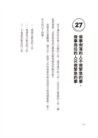 27 做事俐落的人會做不急的事,做事拖拉的人總是以緊急的事優先