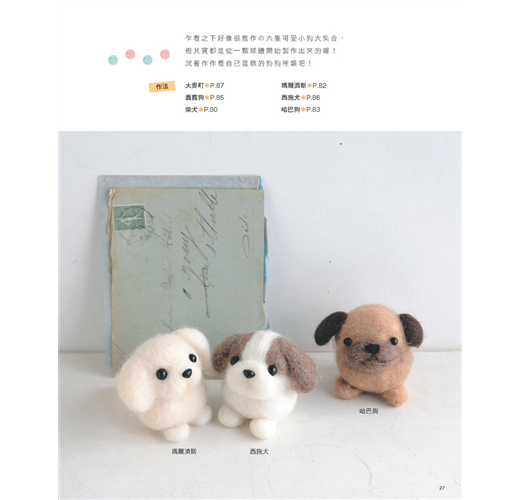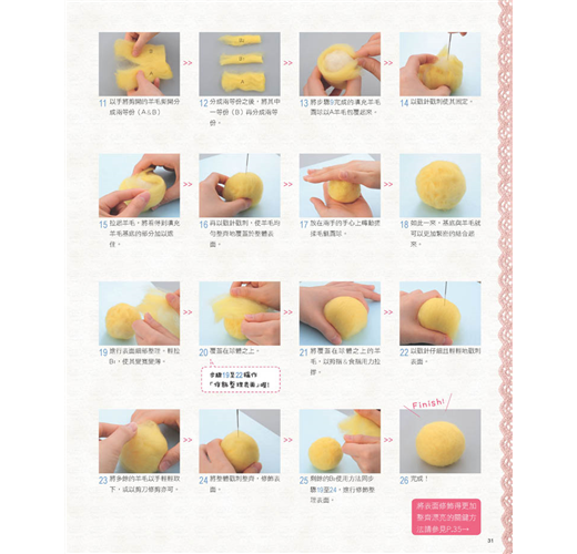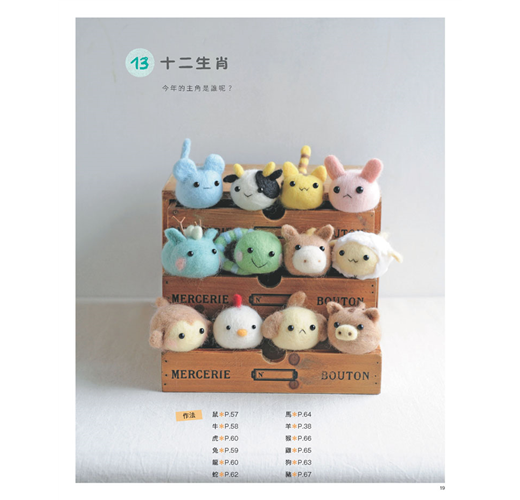 全作品皆有詳細步驟圖解,且以基礎圓形為底,輔以秘密道具「填充羊毛」,戳刺塑型更加好上手。