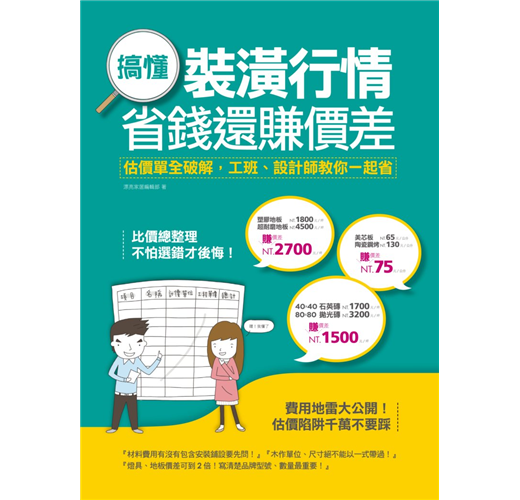 多達上百個裝潢工程項目的單價一目了然,拆除天花板要多少錢?移糞管又該多少錢?系統櫃對開門又該怎麼計價?網羅工班、設計師的價格秘辛,估價單費用一次全公開,讓裝潢屋主不再擔心被坑錢!