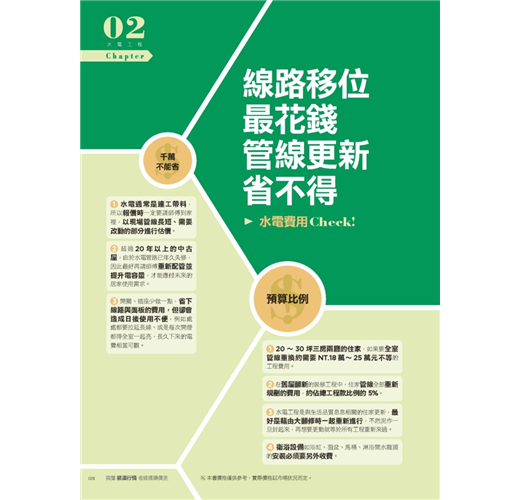 中古屋的水電費用大約佔總裝潢費用5%,而且管路施工是用距離計價,用坪數報價模糊空間大!