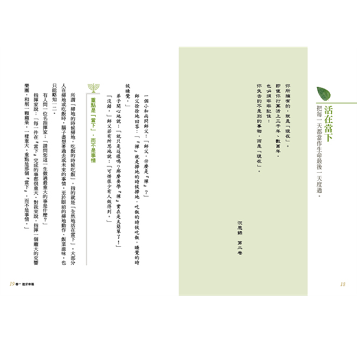 愛好哲學的人,視為哲學著作研讀;不喜歡哲學的人,把它做為修身養性的書品味翻讀。舒緩心靈、安頓靈魂,它像一座指引人生航向的燈塔,提醒現代人處世的生命哲學,深刻影響眾多政商界名人,都將它當作案頭床頭書,不時翻閱自省、心靈交流。