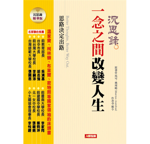「從自己的體會與這本《沉思錄—一念之間改變人生》勵志小品相映照,我覺得它蘊含的雋永智慧,以及觸動人心的小故事,可以讓人們在煩亂紛擾的生活中,找到心靈的出路。」