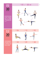 第1天開始運動1分鐘,每天循序漸進增加1分鐘,到第30天為止完成全身各部位體態雕塑,以及第30天後的運動維持計畫。