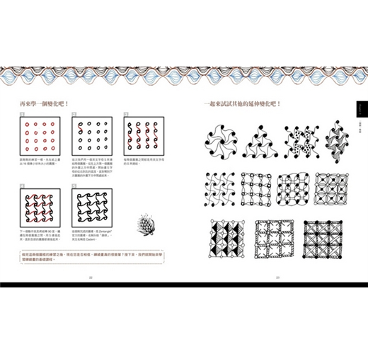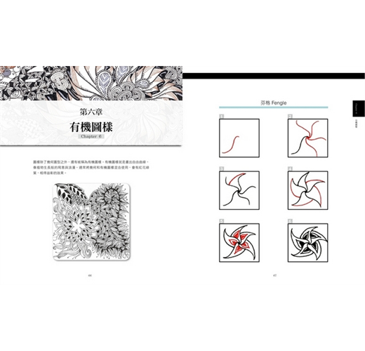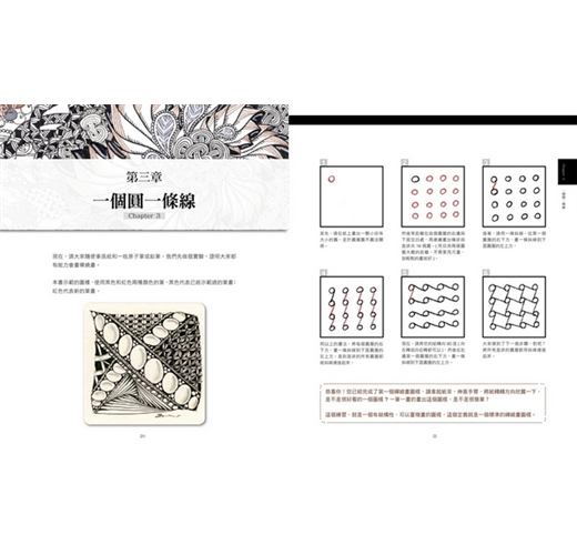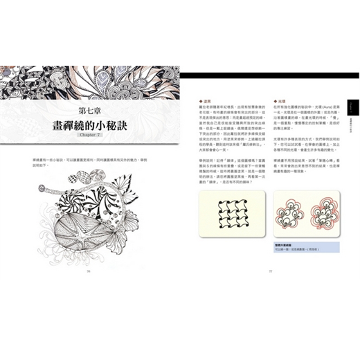 書中另外還介紹各地禪繞畫愛好者的創作,附錄則特別包括如何將圖樣創作投稿、如何取得禪繞認證教師資格、如何準備用具與材料等讀者最常提出的問題。