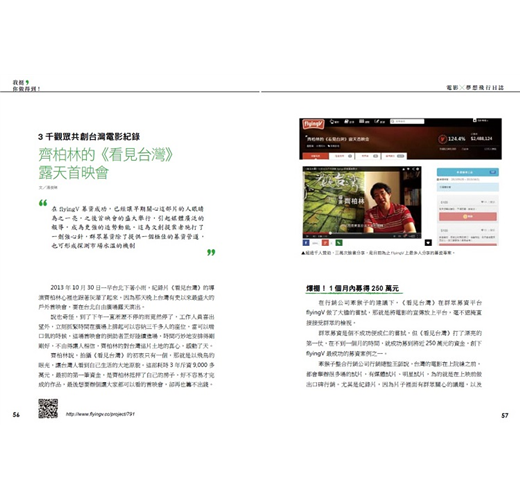 群眾募資是個不成功便成仁的嘗試,但《看見台灣》打了漂亮的第一仗,在不到一個月的時間,就成功募到將近250萬元的資金,創下flyingV最成功的募資案例之一。