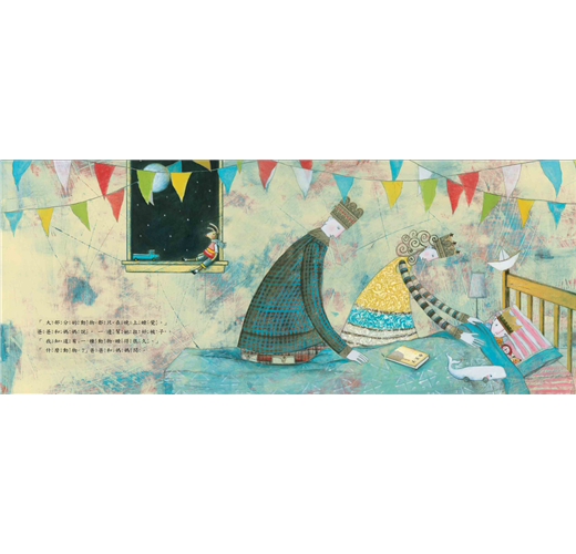除了布雷克的詩,另一樣被繪者用在畫中的經典文學作品是《小王子》,先是在房間地上,再由媽媽拿著,之後放在小女孩的床上。《小王子》的出現顯然和書中人物與動物頭上的皇冠有關,我們可以看到爸媽對小女孩的態度,就像是面對一位小公主,動物頭上的皇冠也愈漸增多,繪者似乎藉此表明人與萬物一樣都擁有非常尊貴的身分。