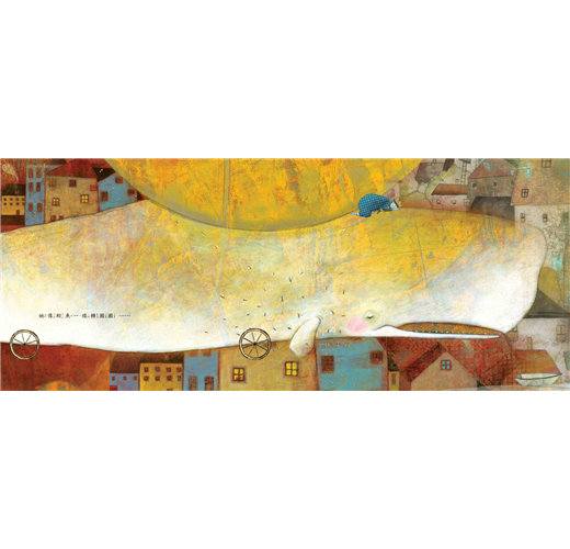 的確,在這本書裡,繪者用手繪與拼貼的技法為故事增添豐富細節,讓讀者在閱讀文字的同時,產生許多有趣的聯想。像是常常出現的輪子,既像太陽和月亮一樣暗示時間的流轉,又可以帶著火車和動物移動,或者幫助人想像大海裡的鯨魚正在轉圈圈;冒著熱氣的茶壺和茶杯給人溫暖的感覺;窗邊的兔子玩偶讓人想到《月亮晚安》……畫中的物件與圖案、紋理、色彩相互交織,營造出大自然與夢想世界的神祕氛圍。這個世界原不只是眼見的物質所展示的樣貌,而是需要我們透過屬靈的眼光,探索其中無盡的奧妙。