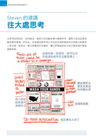從一張Wash your hands的海報,根據23位頂尖設計師的評圖指導之下的實驗成果,真令人拍案叫絕!標語從命令句的「Wash your hands」,到疑問句「What’s on your hands? 」到轉化句「Soap it up」;圖像從手的造型,到泡沫與水漬,再到細菌,甚至是培養皿的意象,你將發現各種運用形式、表現技法、語意表達等,都富含了變化性與可能性。