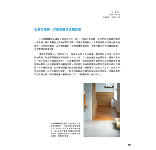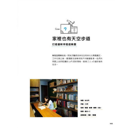 空間老是放了貓咪的玩具,不知道該收在哪?貓跳台買了,卻沒有貓咪要用,這是怎麼回事?貓砂屋收進櫃子,雖然減少落砂,但是很難清理,該怎麼解決才好?想要讓貓咪好住,最後卻苦到自己嗎?其實,想要解決這問題,在設計前,不只要思考人的生活習慣,還必須從貓咪的習性來看。