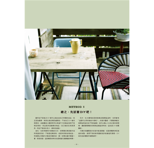 作者認為DIY,就是為了作出更方便使用的東西,是為了追求更舒適居家生活的小小工藝。既然要作,就要作外型漂亮、又容易作的,所以,本書只介紹製作方法簡單的物品,希望可以讓大家更喜歡室內裝飾及居家改造設計!
