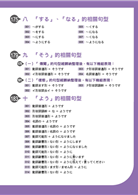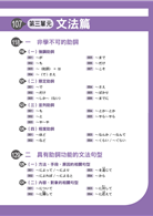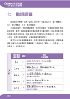 「語彙」題型則包括語彙的用法及語意的掌握,因此第二單元列出外來語、形容詞、複合詞、副詞、接續詞、動詞等,透過五十音的排列歸納整理,幫助考生在短時間內背誦及記憶。用「漢字」與「詞性」這兩種方法交叉學習,保證舉一反三,「文字‧語彙」項目取得高分。
