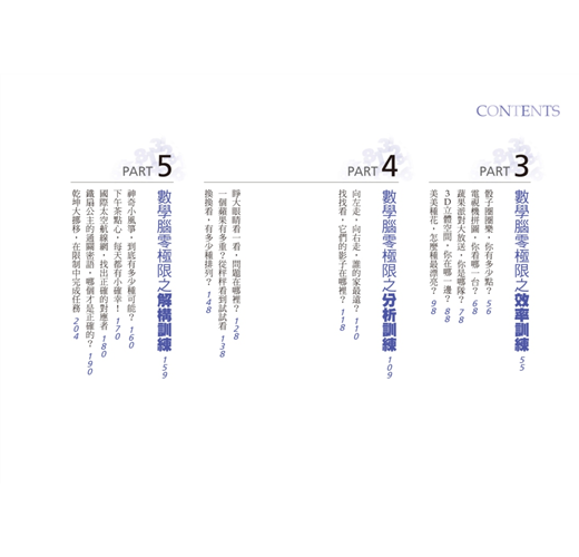 本書將藉由簡單的遊戲激發你被隱藏已久的數學腦潛力,書中的詳細圖解與相關練習更能讓你藉由循序漸進的步驟,找出自己沒發現的盲點,全面提升你的競爭力和優勢力。